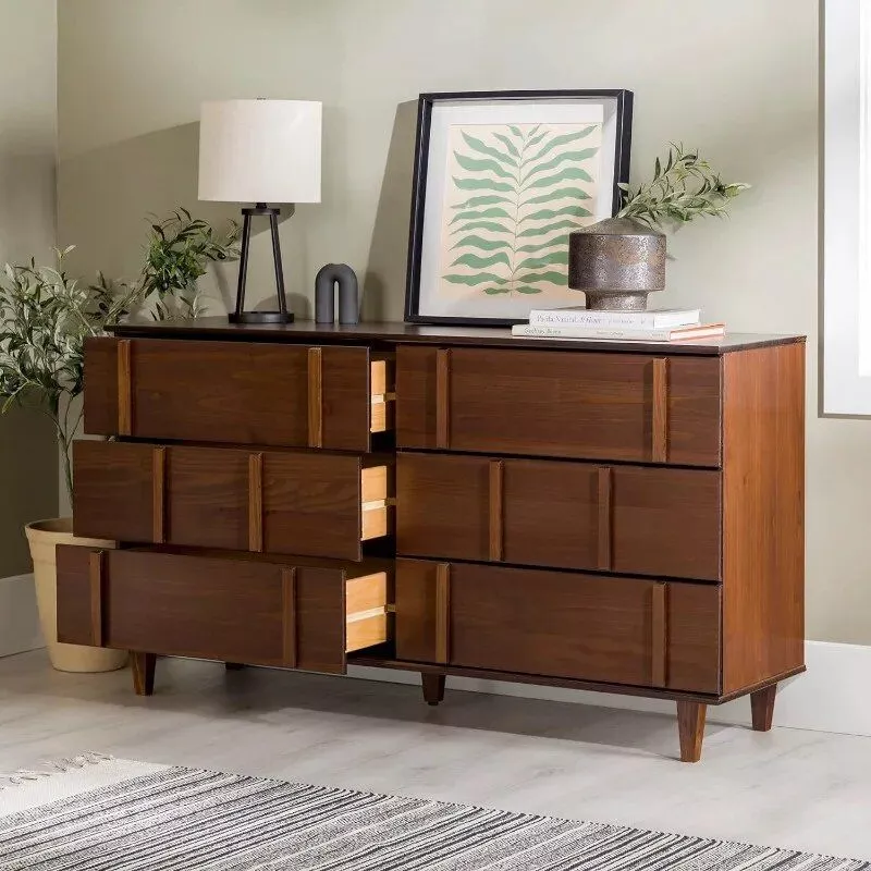 Our dresser stands out for its solid construction, spacious storage, and elegant design. Ideal for everyday use, it brings both functionality and style to your home. The special vertical wood detailing not only adds a modern touch but also makes accessing your items effortless. Enjoy a seamless shopping experience with our reliable customer service and efficient shipping and returns policy.