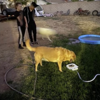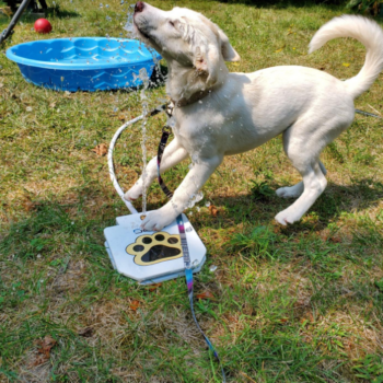 My buddy, Foster, loves water! Normally, in the summer, I will go outside with him and hold the hose up and let him chase the water. He loves it but I can't do that as often as I'd like so the product is definitely what he needed.