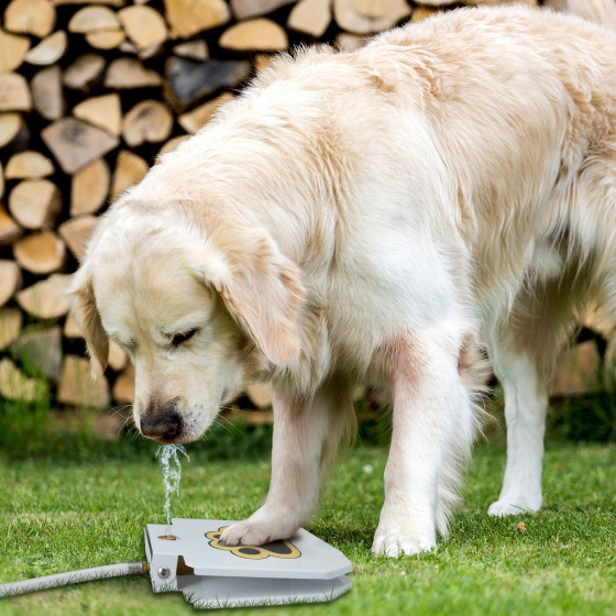 When you buy our dog water fountain, it comes with a two-way splitter attachment for your water valve, letting you use your normal garden hose and Automatic Outdoor Dog Water Fountain at the same time. A pressure adjustment valve on each split allows you to control flow and pressure to train your pooch into using the fountain.
