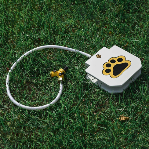 Our water fountain is made of heavy-gauge steel and a copper valve to prevent leakage while the hose is tamper-resistant for no holes or punctures. The paw-print pedal is made of durable steel plate for a concrete stepping surface (no flimsy of cheap plastic), which rubber friction pads to reduce unwanted skid and movement. The attached hose is also 40.5-inch long for ease of use in any backyard or front yard. With on purchase, you get 9 x 9.4 in dog water fountain, 40.5-inch long hose and two-way splitter attachment.