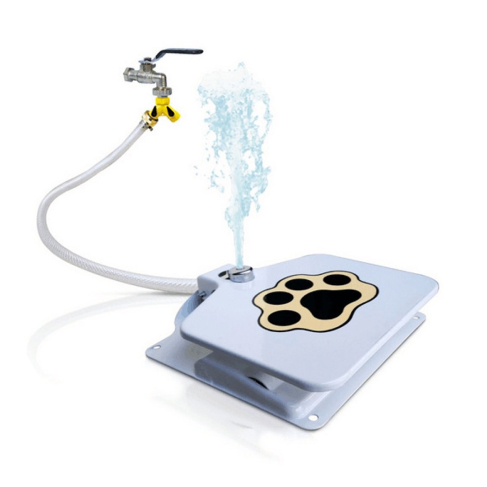 Teach your dog to step onto the printed-paw pattern of the water fountain to dispense water. Each purchase includes some training instructions you can follow to ease your pooch into using the fountain. With time, he or she will be stepping on the fountain pedal naturally for a sip of water!