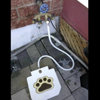Your furry best friend does all the work. Here’s the detailed installation instruction: take Automatic Outdoor Dog Water Fountain and a garden hose. Connect the Water Fountain to the hose. Screw the hose into the two-way splitter (or directly onto your water valve) and let your fluffy friend enjoy drinking process! Our Automatic Outdoor Dog Water Fountain also requires no batteries or controller or anything fancy.