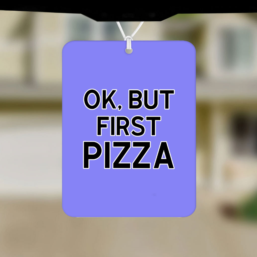 Classic and simple rectangle shape: But First Pizza Car Freshener Set of 6 is designed into a vertical rectangle shape with a hole on the shorter side. The classic and simple design makes this freshener suitable for various occasions, and you can use it to thread through the hole and hang it in your car or other places.