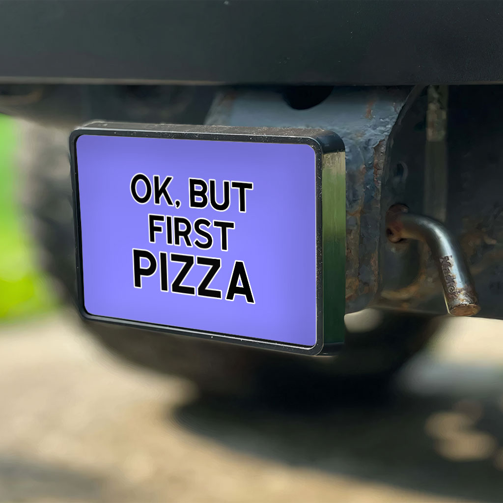 But First Pizza Trailer Hitch Cover – Word Art Trailer Hitch Cover – Minimalist Trailer Hitch Cover