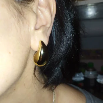These gold teardrop earrings are the ultimate imitations! They have a substantial weight that lends them an authentic feel. Once securely fastened, they stay in place without much movement. These earrings are both stunning and lightweight, garnering many compliments and inquiries from friends who couldn't find them in stores—I highly recommend them!