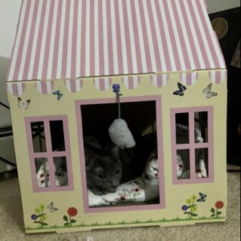 Do be aware that if your cat is like my two boy beasties, they will decide to remodel it with their teeth. It does not bother me in the least as they are enjoying the process of biting off bits of cardboard. One of my girls is fairly interested in the house, but the boys both LOVE it! The price is such that I will feel free to replace it every so often.