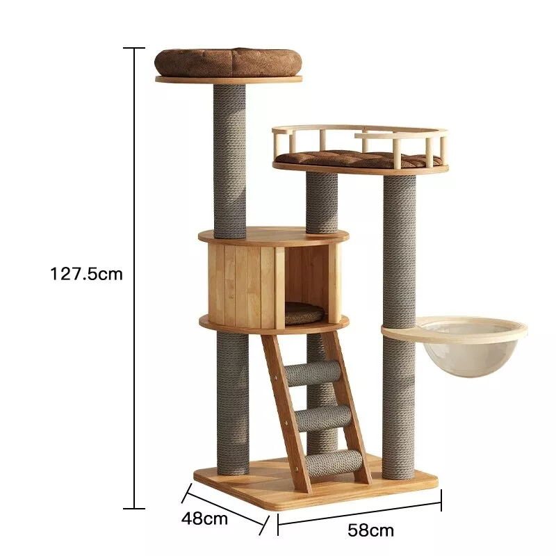 This isn’t just any cat tree. Our commitment to quality, combined with thoughtful design, makes our Climbing Tower a standout. The integration of a litter capsule within a luxurious solid wood structure is a game-changer, offering convenience and cleanliness alongside aesthetic appeal. Crafted in Guangdong and designed for the discerning pet owner, it reflects a deep understanding of feline needs and owner preferences.