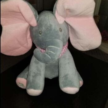 My daughter received this as a gift and let me tell you, it is THE cutest singing stuffed animal i have ever seen! It’s such great quality, so so soft and well made and the voice is super cute. (Not creepy like some!!) The elephant’s ears move to the music and play peek-a-boo with baby. It’s held up great so far even with my 1.5-year-old pulling on the ears and pushing the buttons a hundred times a day! We show this off to everyone! I think it will become my go-to baby gift for friends now, and would definitely purchase another one if anything were to happen to ours. I am shocked at the price, something this great of quality and cuteness would generally be upwards of $45-50, so at this price is the perfect buy!!