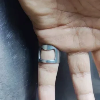 A true innovation in the world of beverage accessories. It fits perfectly and works flawlessly every time. The material is premium, giving it a luxurious feel. It's a practical yet fashionable item that has become indispensable in my social gatherings. Worn daily, this ring holds symbolic significance as a replacement for past engagements, despite being slightly uncomfortable and prone to pinching during bottle opening; it's well-made and recommended for its cool appearance and practicality.