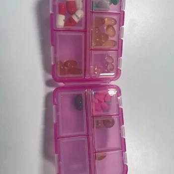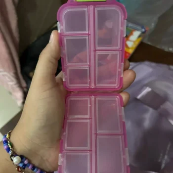 I adore this versatile pill box. Its numerous compartments make it suitable for more than just pills, and its size is just right—not too large to fit comfortably in a purse. I carry mine with me constantly. In addition to holding pills, it serves as a handy storage spot for small items like buttons, ensuring they won't get lost. The flexibility of the compartments allows you to store whatever you need, making it perfect for coordinating with different color schemes or organizing various items.